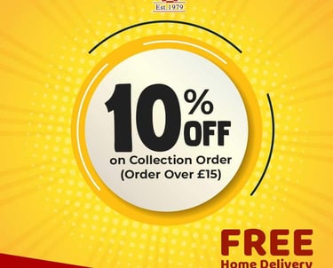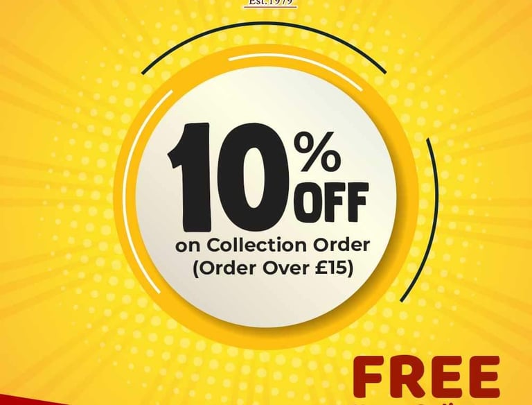 Convenient takeaway for your favourite meals. 10% off on collection orders over £15
